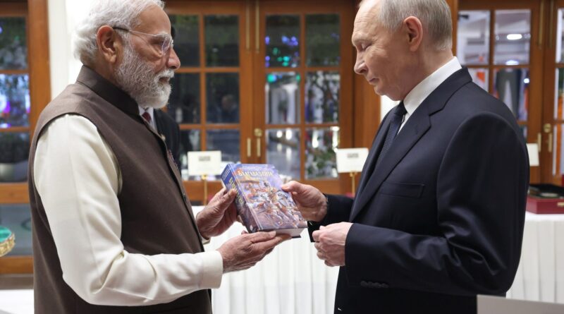Read Moreନୂଆଦିଲ୍ଲୀ,: ଦୁଇ ଦିନିଆ ଭାରତ ଗସ୍ତରେ ଥିବା ରୁଷିଆ ରାଷ୍ଟ୍ରପତି ଭ୍ଲାଦିମିର ପୁଟିନଙ୍କୁ ପ୍ରଧାନମନ୍ତ୍ରୀ ନରେନ୍ଦ୍ର ମୋଦି ଭଗବଦ୍ ଗୀତାର ରୁଷିଆ ସଂସ୍କରଣର ଏକ କପି ଉପହାର