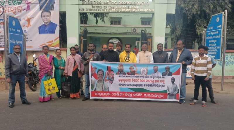 Read Moreରାଇରଙ୍ଗପୁର: ମୟୂରଭଞ୍ଜ ଜିଲ୍ଲା ବାମନଘାଟୀ ଉପଖଣ୍ଡ ରାଇରଙ୍ଗପୁର ସହରସ୍ଥ ସ୍ଥାନୀୟ ଉପଜିଲ୍ଲାପାଳ କାର୍ଯ୍ଯାଳୟ ସମ୍ମୁଖରେ ପଶ୍ଚିମ ମୟୂରଭଞ୍ଜ ଜିଲ୍ଲା କଂଗ୍ରେସ କମିଟୀ ପକ୍ଷରୁ ନେସନାଲ ହେରାଲଡ ମାମଲାରେ