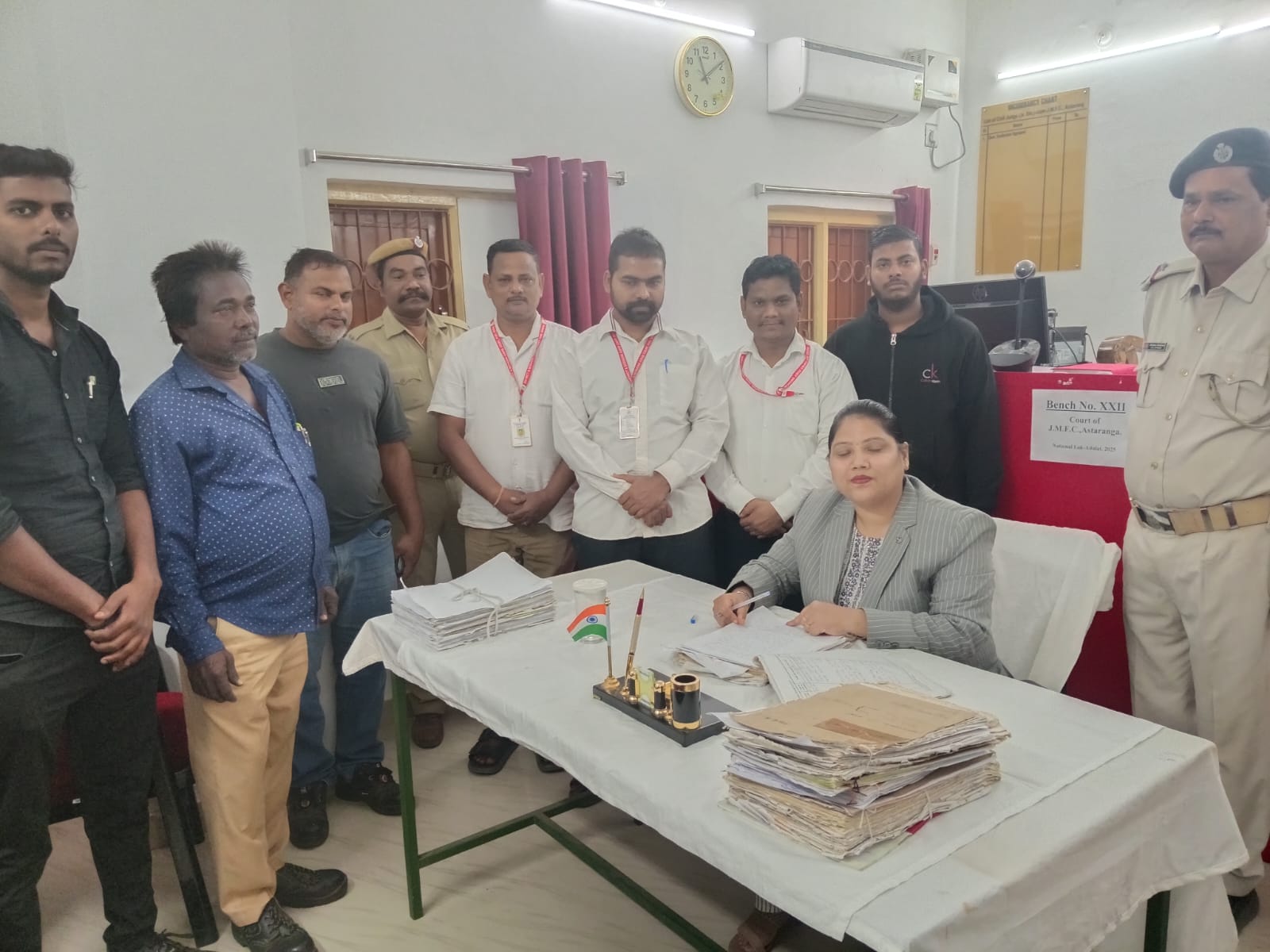 ଅସ୍ତରଙ୍ଗ : ପୁରୀଜିଲ୍ଲା ଅସ୍ତରଙ୍ଗ ପ୍ରଥମ ଶ୍ରେଣୀ ବିଚାର ବିଭାଗୀୟ କୋର୍ଟ ପରିସରରେ ରାଷ୍ଟ୍ରୀୟ ଲୋକ ଅଦାଲତ ଦିବସ ଅନୁଷ୍ଠିତ ହୋଇଥିଲା । ନିମାପଡା କୁ ଅସ୍ତରଙ୍ଗ ର ଜନସାଧାରଣ ଯାଉଥିଲେ ଏବେ ତାହା ଅସ୍ତରଙ୍ଗ ରେ ସୁବିଧା ପାଇପାରୁଛନ୍ତି। ବିଚାରପତି ସୁଧାବାଇ ଅଗ୍ରୱାଲ ଙ୍କ ଅଦାଲତ ରେ ବିଭିନ୍ନ ବିଭାଗ ର ମୋଟ ୪୨ ଟି କେସ୍ ରେ ସମନ ଜାରି ହୋଇଥିଲା । ସେଥି ମଧ୍ୟରୁ ୨୪ ଟି କେସ୍ ବିଚାର ହୋଇ ଫଇସଲା ହୋଇଥିବା ବେଳେ ଚେକ୍ ବାଉନ୍ସ ବାବଦରେ ୬ ଲକ୍ଷ୍ୟ ୨0 ହଜାର ଟଙ୍କା ଜୋରିମାନା ଆଦାୟ କରାଯାଇଥିଲା। ଏହି ଅଦାଲତ କାର୍ଯ୍ୟକ୍ରମ ରେ ସମସ୍ତ ଅଧିକାରୀ ଉପସ୍ଥିତ ରହି ସହଯୋଗ କରିଥିଲେ।